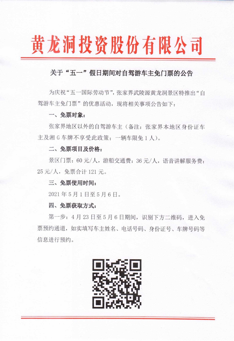 關(guān)于“五一”假日期間對自駕游車主免門票的公告