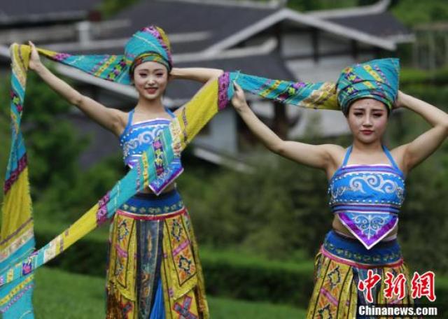 5月3日,湖南張家界武陵源黃龍洞風(fēng)景區(qū)的青年員工身著盛裝,上演了一場精彩的苗族頭帕秀,喜慶五四青年節(jié)的到來。